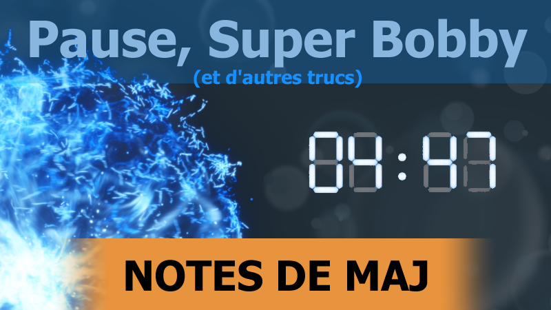 Ajout d'une pause, Bobby plus beau que jamais, pouvoir allumer et éteindre la lumière du menu, ajout d'un diagnostique "expert" et d'autres trucs.